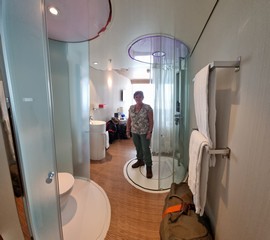 Vrijdag, eindelijk klaar. Alles in een koffer en tas kunnen krijgen. De stroopwafels die we voor de familie in Canada bij ons hebben in de 'harde' koffer, de drop in de tas. 2 kilo extra bagage?? Ingrid vond het toch nog even nodig om de baard te trimmen, er zat zeker één mm teveel op?? Hotel overnachting CitizenM
