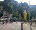 Voor vandaag hadden we ons doel gezet op de Batu Caves. In deze grotten is een Hindoe tempel en dat schijnt bijzonder mooi te zijn. Gisteren bij het toeristenburo hadden we gehoord dat we de trein kunnen nemen op het Centraal Station. Bij de receptie van het hotel maar eens nagevraagd hoe ik daar het makkelijkst kan komen. En wat blijkt: met de taxi! Hoe verrassend is dat :-) Voor 15 of 20 Rm werd gezegd en dat hebben we maar gedaan. Onze taxichauffeur vroeg natuurlijk 20 Rm, dat geluk hebben we altijd. En 10 minuten later stonden we op het station. Het is een rit van ongeveer 45 minuten dus de rein zal ook wel wat kosten. Nou dat was ook zo: 4 Rm per persoon, 1 euro dus. Kijk, daar kunnen ze in Nederland nog wat van leren. Maak het goedkoop en men neemt vanzelf de trein.