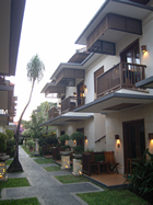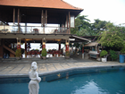 Maandag en we hebben alle tijd. Heerlijk uitgeslapen, wat een verademing is dat, een airco. Niet dat we die laag hebben staan, 28 graden zou het moeten zijn volgens de thermostaat. Nu geloof ik dat niet want het voelt wel kouder aan, maar vooral de lage luchtvochtigheid is lekker. We zaten pas om 9:30 aan het ontbijt. Een ruime keuze, van natuurlijk ook hier Nasi Goreng, maar ook vele soorten brood, yoghurt, fruit EN: kaas. Echte kaas, helaas wel jong maar toch heel wat anders dan de plakjes die we hiervoor hebben gehad wat kaas moet voorstellen. En de croissanten zijn hier net zo vers en knappend als in Frankrijk, heerlijk. Alleen die koffie: het is zwart, ruikt naar koffie als je de neus er boven hangt maar smaakt naar slootwater.