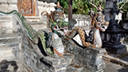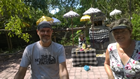 4 Juni, lopende door Ubud Vandaag hebben we geen haast, er stond geen programma klaar. Dus na het ontbijt hebben we nog wat op ons terras rond gehangen. Ingrid wilde haar duikschoenen controleren of ze al droog waren en gaf (opnieuw) een grote gil. Er bleek een heel mierennest in te zitten. Lekker donker en vochtig voor ze maar Ingrid was er niet blij mee :-0 Ook nu kwamen ze weer aangesneld en na de oorzaak vastgesteld te hebben van het tumult werd er een grote spuitbus gehaald en de mieren verdelgd, de schoenen uitgeklopt en in de volle zon gezet. De mieren zaten er blijkbaar al een tijdje want er kwamen ook veel eieren naar buiten.