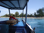 Dinsdag, 26 mei, met de boot mee naar Gili Meno. Vandaag dus bijtijds het bed uit. We waren zo vroeg dat de koffie nog niet klaar was en het personeel ook nog niet echt wakker. Een omelet bestled met alles erop en eraan en dta bleek fout te gaan. Daardoor moesten we wat langer op ons eitje wachten waardoor Ingrid weer de zenuwen kreeg. Zij heeft nog steeds niet het relaxede gevoel over haar. We hadden om 7:30 afgesproken en ze was bang dat we te laat zouden zijn.