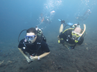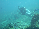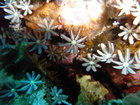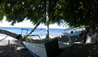 Vandaag, donderdag, en morgen gaan we duiken. Om 9 uur melden we ons bij de duikshop en we regen daar en briefing van Hugo, onze gids van vandaag. Na het gebruikelijke uitleg hoe de buddycheck gedaan wordt kregen we te horen wat we konden verwachten op de duikplekken zelf. Vanochtend gaan we eerst naar de Coral Fan. We zakken dan langzaam naar benden totop de bodem, ca 6 meter en gaan dan langzaam naar ongeveer 20 meter. Bij 120 bar gaan we weer naar 10 meter en bij 70 gaan we naar 5 voor de safety stop. We zijn met z'n vieren op de boot, Ingrid en ikzelf, de gids Hugo en een instructeur in opleiding. De boot is een soort veredelde kano met 2 stabilisatoren waar het zaak is het gewicht links en rechts te verdelen. Met 4 personen gaat het nog wel maar als de boot vol zou zijn, kan hij nog omgaan ook. Gelijktijdig overboord, achterwaartse koprol, en dan naar de voorkant van de boot, weg van de motor. Iedereen OK, daar gaan we.