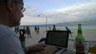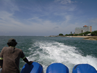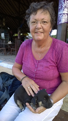 Maandag, de 23ste mei, Fietsen langs het strand We hadden voor 1 dag een fiets gehuurd. Het blijken redelijke fietsen te zijn gelukkig, met een mand voorop. Wel handig uiteindelijk, kan je de rugzak mooi indoen en krijg je niet zo'n natte rug van het zweet. We hebben eerst geprobeerd over de straat te fietsen. Het begin stukje ging wel goed, maar dat kwam voornamelijk omdat we over een golfbaan bleken te fietsen. Ik moest wel meteen aan Harry denken, mijn broer. Maar ik ban bang dat er weinig goede dialyse mogelijkheden hier zijn. Maar ver zijn we zo niet gekomen. We kwamen op een doodlopend stukje weg, met een tempel aan het eind. Veel mensen met handicap hier, blijkbaar dus een god die de pijn kan verzachten. Maar voor de fiets hield het dus op. De ander keuze was een enorm drukke weg of dan maar weer terug langs het strand. Nu ben ik niet zo bang uit gevallen, maar dit was mij ook te gortig. Druk met auto's en brommers die de verdere ruimte opeisen, gaten in de weg, niet niet bepaald een leuke fietstocht zou dat worden. Dus maar langs het strand :-)