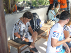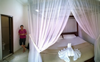18 juni, we gaan naar huis! We waren bijtijds wakker. Nee, niet door de jeugd maar blijkbaar door de onderliggende spanning van ons vertrek. We worden pas om 16:00 uur opgehaald dus we hebben meer dan genoeg tijd. De kamer hebben we tot zeker 3 uur zodat we zelfs nog kunnen gaan zwemmen. We pakken de laatste dingen in de koffer, laten de shampoo en zeep staan zodat we nog kunnen douchen en gaan eerst maar eens ontbijten. De laatste keer dat we aan de plaktafels zitten. Nee, echt schoonmaken kunnen ze hier niet. Hierna ook maar de kamer betaald, zodat we precies weten wat we nog aan geld hebben. De man probeerde nogmaals om 100.000Rp te krijgen voor het langer aanhouden van de kamer maar ik heb hem fijntjes :-) verteld dat we iets anders hadden afgesproken! Oh ja, dat was waar, sorry. Ja ja, dat zal wel.