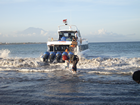 10 juni, op weg naar een ander eiland, Nusa Lembongan 6:00 hr, wat is dat geluid nu weer! Oh shit, de wekker, dat is waar ook. We vertrekken vandaag vroeg! Je moet tenslotte wat over hebben als je voor weinig geld naar Sanur gebracht wil worden :-) De taxichauffeur moet namelijk iemand ophalen en wil ons nu voor slechts 250.000Rp wegbrengen, anders is de standaardprijs het dubbele! En we zijn Nederlanders niet waar en zitten graag voor een dubbeltje op de eerste rang :-)