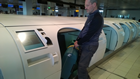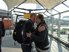 Eenmaal in Leusden de auto ingeleverd. Babette was snel beneden in de parkeergarage en daar hebben we een kras en een pit in de portier geconstateerd. Helaas, niet geheel schadevrij dus. Maar een krabbel onder de papieren, de sleutels overhandigd en dan weer door, op naar Schiphol.