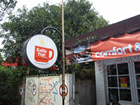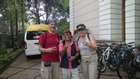 Hierna dan toch naar de Botanische tuin. We hebben de lokale gids af gewimperd en zijn zelf de tuin in gegaan. Goed ingesmeerd tegen de muskieten, maar ik ben mijn nek vergeten tegen de zon te beschermen merk ik nu onder de douche :-( Twee uur hebben we er door gebracht en ook hier weer herhaaldelijk op de foto met wild vreemden, lachen. Ondertussen was het aan het betrekken en bij het busje begon het zowaar te onweren. 15:30 was het ondertussen. De lokale gids heeft Ingrid nog snel een paar ansichtkaarten versleten. Ze heeft er alweer spijt van, maar ze zijn wel mooi! Hierna nog bij een restaurant langs gegaan om een late lunch te nemen.