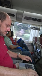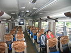 Maar goed de trein vertrok zowaar netjes op tijd. Aan boord hebben we behalve de conducteur nog een stewardes en bewaking. Ook op het station zag ik dat de treinen werden gecontroleerd van onder en idem de perrons. Verhoogde veiligheids code??