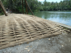 Toen we verder met de auto en blijkbaar vond de gids ons wel aardig, of Kur heeft hem omgepraat. Wij zullen het nooit weten, maar we stopten iets verder op bij nog een bezienswaardigheid: een bamboe brug. WE konden er niet helemaal overheen want hij werd net gerepareerd. Drie keer per jaar werd dat gedaan. Vooral de brommers rijden de brugdek stuk. Het was grappig om te zien hoe de bedekking opnieuw werd gevlochten met, inderdaad ;-) bamboe. En nu dan zwemmen. Weer de auto in en na een 20 minuten kwamen we bij het strand. Echt een backbackers gebied. Veel Australiërs en Duitsers daar. Vanwege de lage kosten maar vooral omdat je hier goed kan surfen. De Indische oceaan geeft hier mooie hoge golven. Wij kwamen om te zwemmen danwel te snorkelen en dat hebben we ook gedaan. Lekker warm water maar om te snorkelen niet interessant blijkt. Veel golven geeft veel turbulentie en daardoor veel zand in het water waardoor het zicht minimaal is. Maar ondanks dat was het toch wel lekker en weer totaal anders om te doen.