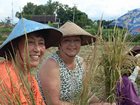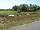 Het is een lange dag in de auto geweest. In het begin zijn we er 2 keer uit gegaan. De eerste keer om bij het oogsten van de rijst te kijken. Alles wordt hier met de hand gedaan. Het afsnijden, bundelen, uitslaan (letterlijk) van de rijstkorrels en daarna het bundelen van de halmen voor verwerking tot veevoer.