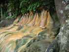 De volgende ochtend na het ontbijt om 7:15 alweer in de auto, want, zoals gezegd, het beloofd een lange dag te worden. Maar eerst naar de 7-Bronnen. De toegangsweg naar de ingang boven is fenominaal. Eerst vanwege de prachtige omgeving, parkachtig eerst en later meer puur natuur, en ook een prachtige asfaltweg. Later werd het echt puur natuur, zowel de omgeving, ruiger, maar ook de weg, ruiger. Indonesische kwaliteit zoals Kur het noemt. Langzaaaaam gaan we omhoog anders stuiteren we met onze kop tegen het dak. Maar dan eindelijk boven. Daar een afdaling af van 200 treden (ja lopend nu) en daar is het. Geel/groen van kleur door de zwavel, stomend vanwege het hete water, stroomt er dus water uit 7 openingen, door de natuur gemaakt op nagenoeg gelijke hoogte. Vreemd om te zien hoe gelijkmatig het is!