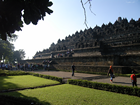 Naar de Borobudur Vandaag inderdaad vroeg op, wat een vakantie :-) Voor zessen stonden we met z'n vieren klaar. Het is ca. 5 minuten lopen naar de ingang en je ziet 'hem' al liggen, zo hoog! We hebben een lokale gids genomen (Rp 100.000) en die heeft van alles uitgelegd over de verlichting van Budda. Onderweg naar het heiligdom werden we aangesproken door verscheidene verkopers van souveniers. "I'm Pepe, maybe you buy later?"