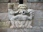 Na het kraton zijn we in 1,5 uur naar Candi Sukuh gereden. Dit ligt hoog in de bergen. Het is een klein tempelcomplex waar het hoofdgebouw door zijn afgeknotte vorm erg doet denken aan een Maja-tempel. Het bijzondere aan dit complex zijn de erotische afbeeldingen. Mannen met grote l.ll.n en symbolen voor de vulva. Althans zo worden die symbolen uitgelegd. Het is niet zo expliciet weer gegeven als het mannelijk geslachtsdeel. Het complex met 3 etages ligt erg mooi gesitueerd, het is er erg rustig. Een mooi moment om even tot rust te komen en die rust ook te nemen. Hierna zijn we weer teruggereden naar Solo om ons hotel op te zoeken. "Goh, we rijden weer terug, 2x 1,5 uur voor een hoop stenen" zei Ingrid en moest er zelf om lachen. Kur had ook nog bananenchips gekocht voor ons. Het is een schat. Ingrid had zachtjes iets tegen mij gezegd en hij had dat opgepikt. Wat een service!!!! Het Hotel is erg mooi. Het is een statig huis met een centraal gebouw, daaromheen ligt een smalle tuin met een vijver en daaromheen zijn dan weer de kamers gesitueerd. Alles met veel donker hout, glas-in-lood ramen, echt prachtig. Enig nadeel waren de kamers, klein. Groot genoeg om in te slapen en zo, maar waar laat je 2 grote koffers? Op het bed dan maar want op de grond kan niet.