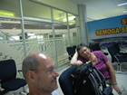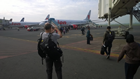 De taxi was op tijd en in een half uurtje stonden we op het vliegveld. Onderweg 2x door de tol gegaan en op het vliegveld nog parkeergeld, een totaal van RP 15.000. En daar sta je dan met je goede gedrag. Waar moeten we zijn. Even vragen maar en 2x naar een abdere checkin gestuurd. En nu maar eens zien wat de koffers wegen. De mijn 21,3 kg, die van Ingrid 22,3 kg. Die van haar was nu wat zwaarder. Maar geen probleem met het overgewicht, er werd geen woord over gerept. Vliegtuig zou wel niet vol zitten, wat ook bleek te kloppen trouwens.