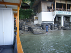 Inderdaad vroeg op! Vijf uur liep de wekker af vanmorgen. Niet alleen zou het een lange dag worden, maar men is ergens in de bergen met de weg bezig en na de spits :-) wordt deze afgesloten: tussen 08:00 en 12:00. We hadden Annelies om koffie en thee verzocht om wakker te worden en een ontbijtpakket want zo vroeg al ontbijten is niet ons ding. Ik had de koffers al naar de verzamelplaats gebracht toen Annelies er aan kwam. Ze had gedacht de koffie en thee naar het huisje te brengen maar we waren er al! Om kwart voor zes zaten we al in het bootje om ons naar de kant te brengen.