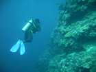 Duiken vandaag en morgen Vandaag min of meer hetzelfde ritueel als gisteren. Bijtijds op voor het ontbijt, naar de duikshop om een pak te passen. Alleen alles net even wat later, wel relaxed. Om 09:00 voeren we uit op een iets kleiner boot, maar de zee is zo kalm dat we geen pil innemen tegen zeeziekte. En dat bleek ook te kloppen. We duiken vandaag 2x, als het goed gaat tenminste. De eerste stek is Ron's en de 2de Mandolin. Ron's is een zanderige bodem wat redelijk langzaam afloopt maar de diepte is toch nogal 28 meter waar we duiken en dat is zeker niet het diepste gedeelte, dat gaat veeeeeel dieper. Veel los staand koraal met veel vis eromheen.
