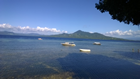 13 april, Snorkelen in Bira Veel is er niet te doen, maar het eiland Liukang Lu wat een half uurtje varen is, heeft een mooi huisrif naar het schijnt. Dus na het ontbijt de koffer open en de zwemspullen bij elkaar gegraaid. Samen met Sam zijn we naar het strandje gelopen. Sam had een bootje geregeld en voor 400.000 hebben we de hele dag de beschikking over het bootje en schipper. Alleen spreekt deze nauwelijks Engels. Met handen en voeten maakte hij ons duidelijk dat we bij het eiland niet bij het strand moesten zijn maar meer naar de zee. Hij heeft ons dan ook een heel eind van het strandje daar over boord gezet. En inderdaad, een mooi plek om het water in te gaan. Er zit veel vis, niet zoveel als op de Bunaken, maar er is genoeg te zien. Er zouden ook schildpadden zitten alleen hebben wij die niet gespot. Het bootje voerde min of meer met ons mee toen we zo min of meer langs de kust zwommen. Nar een uur vond ik het wel genoeg, het liep ook al tegen twaalven en ik begon trek te krijgen.