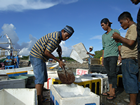 Veel is er niet te vertellen van de rit. Het is de weg langs de kust. Veel rijstvelden, afgewisseld met vergezichten over zee, en uiteindelijk ook zoutpannen. Behalve rijst igt er nu ook mais en zeewier langd de weg te drogen. En de karbouwen, jonge beesten nog, lopen rustig langs de weg.