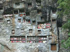 Na de plechtigheid zijn we naar Lemo gereden. Hier is een van de indrukwekkendste rotsgraflocaties van de streek. Tientallen beelden op balkons, de tau-tau, kijken hier het dal in en bewaken de graven. De graven worden hoog in de rotsen uitgehouwen en voor een graf duurt dat ongeveer 2-3 maanden. Allemaal met de hand. Nadat men hier in is neergezet wordt het afgesloten met een houten deur met een geheim slot. Dit om plundering tegen te gaan. Als men rijk is bijvoorbeeld wordt er ook goud en zilver mee begraven en dat blijft toch aantrekkelijk. Verder hebben we de Babyboom nog gezien en nog een olek met rotsgraven en tau-tau die de wacht hielden.