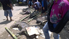 De dieren worden daar ter plekke geslacht, schoongemaakt, bereid en opgediend. Gebakken, gekookt, in bamboe hulsen met specerijen gestoofd. Vele mogelijkheden blijkt. Niet over nadenken, gewoon eten en proeven en het smaakte goed. Verder wordt er ook koffie en cake geserveerd, echt Hollands lijkt het zo. Ik hoef niet te vertellen dat voor ons die het doden van dieren niet meer van nabij meemaken, wij kopen ons stukje vlees bij de slager, het zien van het hele gebeuren een vreemd en soms akelig aanziend schouwspel is. Maar voor hen is het heel normaal en de kleine kinderen lopen er gewoon tussendoor te spelen, heel bizar.