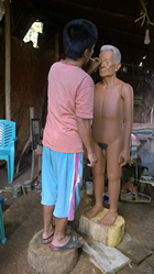 Na de markt zijn we naar Palawa gereden. Dit is opnieuw een traditioneel dorp. Er werd een volledig nieuw Tongokan gebouwd. Geheel van hout. En weer veel handwerk om de traditie in ere te houden. Ingrid kon trouwens de verkoopster van souvenirs niet weerstaan en heeft een lepel gekocht van buffelhoorn. We gaan die thuis gebruiken om de rijst op te scheppen :-) En ik heb de strijd met haar verloren om het niet te doen. Er hoefde dus geen hanengevecht aan te pas te komen om het verschil tussen ons te beslechten.
