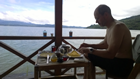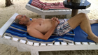 Onze koffers werden netjes verplaatst naar het nieuwe huisje. Het was nog vroeg, dus zwemgoed aan, de snorkelspullen mee en het water in, heerlijk. Hierna lekker op een ligbed uitrusten en van de 'coffee time' genieten: kopi Tubruk met een plakje cake. Dan weer terug naar ons huisje om te douchen en nog wat te relaxen. En nu blijkt dat we een vaste huisgenoot hebben! Bij het optillen van de toiletbril blijkt er een varaan in te zitten. Hij (of zij) schrok net zo als ikzelf, draaide zich om en verdween onderwater door de rioolbuis. Maar hij was zeker niet weg. Later die middag schrok Ingrid zich lam. Ze zat op de pot en hoorde wat naast haar bij de douche. Toen ze om het hoekje keek zat daar meneer haar aan te kijken. Een gil volgde zoals Ingrid die kan geven. Blijkbaar schrok de varaan er ook zo van dat hij het op een lopen zette en met grote snelheid naar buiten vloog. Maar goed dat de buitendeur open stond.