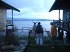 Weg bij Bunaken en naar Tangkoko Vandaag hebben we geen haast, we hoeven pas om 10:00 uur met de boot mee. Een half uurtje varen en om 10:30 worden we weer verwacht aan wal. Dus 'uitgeslapen' verschenen we aan het ontbijt. Het ritueel van vroeg naar bed en vroeg weer op begint al door te werken. Om 08:00 zaten we al aan tafel. Ziggy was de enige die ging duiken vanochtend. Renate bleek een probleem op haar hak te hebben opgelopen met niet goed passende vinnen en ook haar bril bleek te schuiven waardoor ze ook een geïrriteerde huid had op haar bovenlip. Dus inplaats dat wij hen uitzwaaien zwaaien zij ons straks uit. 'Zij' zijn Renate en Sandra. Gisteravond zijn we bij de dames uitgenodigd geweest om voor het diner een biertje te drinken op hun nieuw terras. Zij hadden geklaagd en hadden nu een riant onderkomen gekregen. Email adressen zijn uitgewisseld zodat ik een filmpje nog naar hun kan mailen en als wij naar Berlijn gaan kunnen we bij hen aankloppen om de stad te bezichtigen.