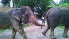 29 april, Tangkahan - naar de olifanten. Vandaag naar de olifanten, we zijn benieuwd en nieuwsgierig wat dat gaat brengen. Maar eerst ontbijten en koffie, niet noodzakelijk in die volgorde :-) Maar dan toch, het is zover. We werden opgehaald en moesten ca. 500 meter lopen naar de plek waar de olifanten zijn. En daar zijn ze dan, groot! Hartstikke vies van de modder, het was wel te zien waarom ze gewassen moeten worden. Ze hebben er 7, 1 mannetje Theo, 27 jaar, en 6 vrouwtjes varierend van 17 tot 49 jaar. Drie zijn er zwanger maar dat valt ons niet op.