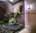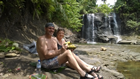 13 mei, wandelen in de Harau vallei. Vanochtend moesten we bijtijds op want we zouden om 9 uur al vertrekken. Maar het ontbijt werd op ons terrasje gebracht, opnieuw roomservice. Pannenkoek met banaan en kaneelsuiker. Slecht 1 maar het was voldoende. Nog koffie erbij om echt wakker te worden en daar gingen we. Een iets andere route dan dat Iwan anders neemt, want hij wilde Ingrid niet 2 uur door de rijstvelden laten lopen. Volgens hem vinden de meeste gasten dit geweldig, zelfs als ze uitglijden en onder de modder komen te zitten, maar Ingrid weigert pertinent. Dus de gemakkelijke weg, over het asfalt en later een brede zandweg. We zijn een doodlopend ravijn in gelopen waar je aan het eind een prachtige waterval had. En inderdaad, deze had wel iets. Vooral verkoeling vonden wij en dat was ook wel nodig want de zon scheen fel vandaag. We hebben hier een tijd gezeten en wat koekjes gegeten, foto's van ons huis laten zien met en zonder sneeuw en ook wat van Oostenrijk. Vooral dat laatste vond hij geweldig. Hij verbaasde zich dat we dat lopen zonder gids, want dat is hier als je de bergen of jungle ingaat dus niet toegestaan. Maar het feit dat alles goed is aangegeven in de kleuren rood-wit zoals de Indonesische vlag kon hij het wel enigszins begrijpen.