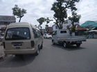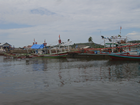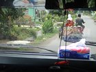 28 april, Van Medan naar Tangkahan Vandaag opgehaald door Apin, de zelfde chauffeur als gisteren. We probeerde hem te vertelln dat we 1 koffer mee wilde nemen en de andere achter laten bij zijn kantoor. Maar hij begreep dat in eerste instantie niet en er werd een portier van het hotel bijgehaald. Die sprak beter Engels en dan nog met handen en voeten moeten duidelijk maken wat we bedoelden. Maar het werd begrepen, althans dat hoopten we. En ja hoor, we reden langs zijn kantoor waar we gisteren ook waren en een koffer werd uitgeladen, de verkeerde! Dat hebben we even rechtgezet en dan gingen we. Erst langs het postkantoor, dan langs de supermarkt en dan eindelijk weg uit de stinkstad.