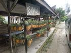 1 mei, Bukit Lawang Vanmorgen hadden we afgesproken met Bendi. Hij zou ons in de tuk-tuk rondrijden. Eerst naar de markt en dan nog naar de ECO-farm. Niet teveel vandaag, lekker rustig aan. Na het ontbijt schoof Bendi aan om nog eens te proberen wat meer van ons tochtje te maken: fabriek voor bruine suiker, tofu etc. Maar we hadden hier geen zijn in. Ook nogmaals de jungle in hebben we vriendelijk doch resoluut afgeslagen. Hoe leuk het gisteren ook was!