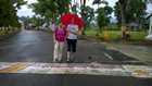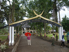 Hierna weer snel verder en helaas, het begon weer te regenen. Veel fotostops hebben we daarom niet gemaakt kan ik je zeggen. Alleen in Bojor zijn we gestopt. Hier passeren we namelijk de evenaar en dat moet natuurlijk op de foto. Er was ook een museum waar we zijn binnengegaan. Maar dat was vergane glorie. Het licht ded het niet en de uitstallingen waar minimaal. Wat wapens, een helm van "meneer" en wat geld, Nederlands tijdens de Japanse bezetting en dat was het wel zo beetje. Maar ze vroegen alleen een donatie, dus dat viel weer mee.