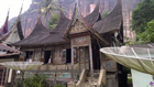 Nog een ding te bezoeken maar nadat we gegeten hebben: de graftombe van koning Sidabutar. Dit was snel gezien, het is alleen een tombe met wat beelden er omheen. En nu terug naar het hotel, zwemmen. Ik sopte letterlijk in mijn schoenen. Het meer blijkt net zo warm te zijn als het zwembadje. Heerlijk verfrissend kan ik je verzekeren. Het eindigde alleen in een gigantische regenbui. Alles en iedereen was al vertrokken, terug naar de kamer, maar wij zijn gaan zitten onder een mooi afdak. Het zat heerlijk relaxed, maar de bui was hevig. En dan blijkt dat het dak van palmbladeren blijkt niet (meer) waterdicht. Het begon vreselijk te lekken. We zijn toen ook maar na onze kamer gegaan. We hadden nog steeds onze zwemkleding aan dus nat worden was niet zo erg, het was alleen wat fris zullen we maar zeggen. En dan doet een warme douche je toch wel weer goed, zeker als dit uit een regendouche komt :-) Ik heb een beschrijving gevonden over de Batak's |