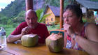 We hebben buren! Uitgerekend in een bijna leeg hotel, waarbij de kamers in losse Batak-huisjes zijn ondergebracht, 2 onder 1 kap, hebben we buren. En dat nog tot daar aan toe maar het zijn dezelfde 2 die we een paar nachten boven ons hebben gehad in Samosir ;-)